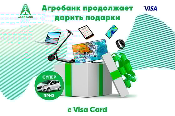2. Совершить покупку с 15 октября по 14 ноября на сумму не менее 5 долларов США (для выигрыша супер приза - 75 долларов США) через международную карту Visa от Агробанк.