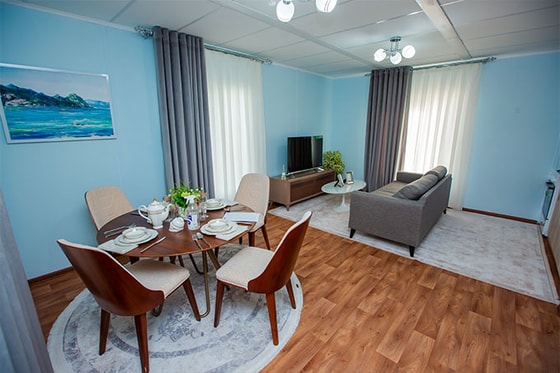 За счет легкости конструкции не требуется дорогостоящий тяжелый фундамент, на 40% снижается стоимость строительства в сравнении с кирпичными домами. Также, при необходимости, модульный дом легко трансформировать и увеличить жилую площадь.