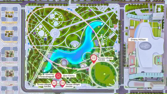 - опустить письмо в один из специальных почтовых ящиков Санта Клауса на территории парка Tashkent City (все почтовые ящики отмечены на карте).