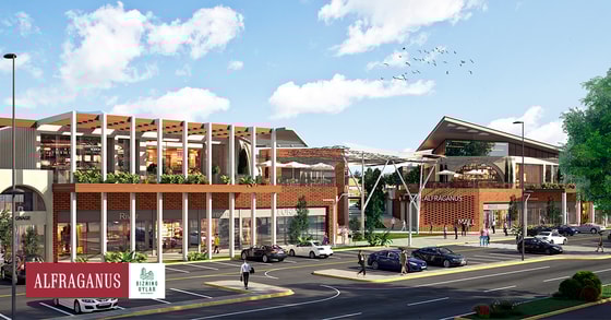 Здания торгового квартала представляют собой 1 и 2-х этажные постройки с коммерческими помещениями и открытыми террасами. Для удобства посетителей, весь периметр объекта будет поделен на определенные тематические секторы, каждый из которых будет представлен определенным видом товаров или услуг и отличаться индивидуальным фасадным оформлением. Здесь можно найти все необходимое – от закусочной до автомобильного салона. На территории Alfraganus в большом количестве будут представлены различные форматы точек общественного питания. Отдельная зона квартала будет выделена под развитие сферы развлечений - аттракционы, автоматы, детские и подростковые площадки, скалодром, квесты, боулинг, лазертаг и прочее. Многочисленные торговые точки будут организованы с помощью линейных магазинов. А крупнейших представителей торговых сетей ждут масштабные якорные магазины.
