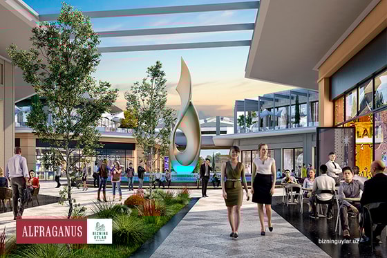 Alfraganus – это новая форма организации делового пространства, предназначенная для розничной торговли и развития сферы услуг. Этот современный квартал, образованный компактными улицами с коммерческими строениями, является не просто торговым пространством, но значимым общественным местом общего пользования. Его масштабная территория составляет 118 000 кв. м.