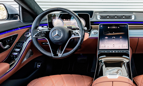 Система MBUX в новом Mercedes S-Сlass — это настоящий прорыв. В вертикально ориентированный тачскрин по центру панели упрятаны все функции автомобиля, включая настройки климата. Физических кнопок в этой машине вообще всего две — кнопка зажигания двигателя и кнопка аварийной сигнализации. Все остальное вплоть до выбора режима движения сенсорное.