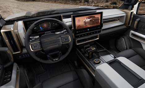 Легендарный Hummer переделали под стать современным трендам — теперь это электрический внедорожник с тремя моторами и автопилотом. В салоне — цифровая приборная панель, 13,4-дюймовый дисплей мультимедийной системы, а также целых 18 камер кругового обзора, изображение с которых выводится на центральный большой квадратный экран. А прямо перед водителем установлен еще один экран прямоугольной формы, который проецирует все показания приборов. Дизайн медиасистемы и прямые углы двух больших дисплеев сделаны в брутальной стилистике знаменитого внедорожника, но скрывают в себе все последние технические разработки компании GM.