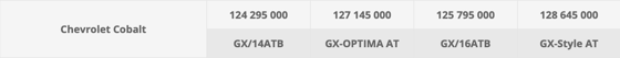 Теперь покупателям предоставляется возможность приобрести автомобиль Chevrolet Cobalt с автоматической коробкой передач со стальными дисками взамен литых. Комплектация «Optima» также включает в себя тонированное заднее стекло, усиленный двигатель и защиту картера.