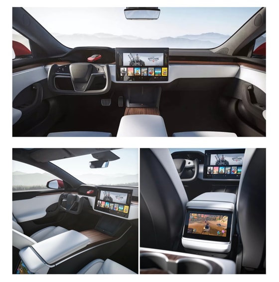 Внешне машина изменилась незначительно, самые крупные изменения оказались сосредоточены внутри электромобиля. Tesla отказалась от портретного экрана посередине машины, в пользу ещё одного, но с меньшими рамками. Серьёзно изменили руль — он стал U-образной формы и лишился лепестков. А для пассажиров на заднем сидении добавили отдельный сенсорный экран.