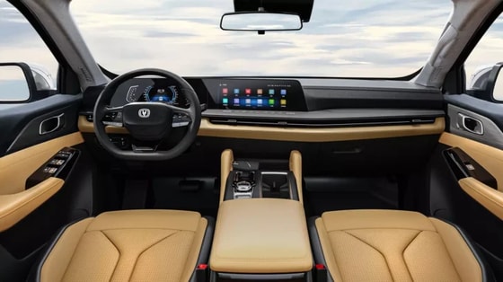 В салоне у него установлены отделанные искусственной кожей кресла с электрорегулировками и вентиляцией (только для двух передних), трехспицевой мультируль, цифровая приборная панель и мультимедийная система с 12,3-дюймовым сенсорным экраном.