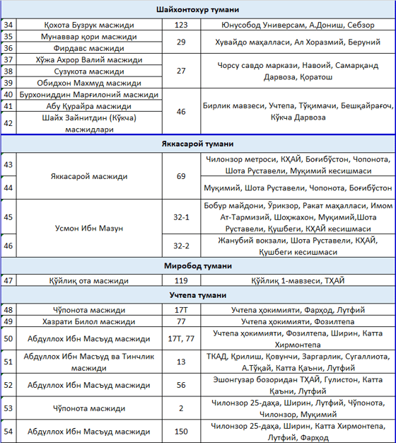 Автобусы будут ездить с 03:00 до 06:00, для граждан посещающих мечети, по следующим маршрутам: