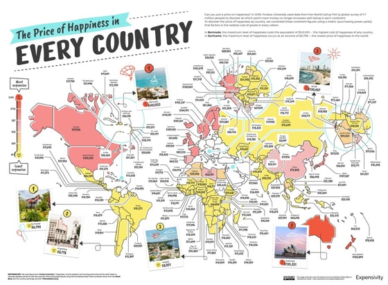 Деньги могут сделать вас менее несчастным, несмотря на то, что счастье за них купить нельзя – считают ученые американского Университета Пердью. Они изучили, какое количество средств необходимо для того, чтобы чувствовать себя довольным жизнью. Результаты опроса, касающиеся 160 стран мира, были выведены в рейтинг.