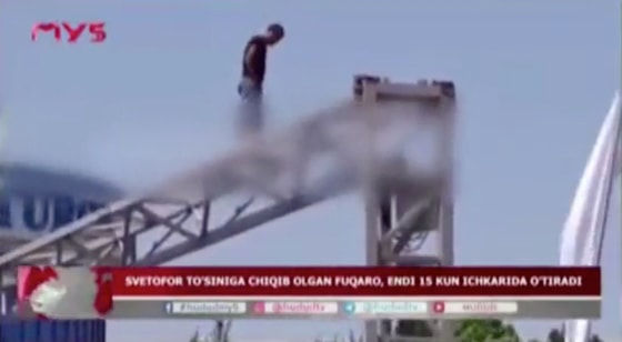 Ранее в Сети распространился видеоролик, в котором пьяный мужчина в Андижане стоял на железной перекладине светофора и требовал встречи с хокимом. Правонарушитель был заключен на 15 суток за подобное поведение.