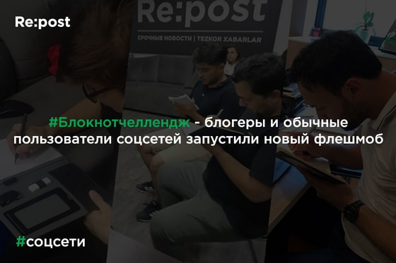 Журналисты Нозим Сафаров и Али Каххоров запустили в соцсетях новый флешмоб #блокнотчеллендж, который приобретает все большую популярность среди блогеров и обычных пользователей соцсетей. Новый тренд появился во время просмотра интервью врио Председателя Агентства информации и массовых коммуникаций при Администрации Президента Республики Узбекистан Комила Алламжонова блогеру Кириллу Альтману. На фото журналисты, внимательно слушая интервью, записывали слова Комила Алламжонова в блокнот.