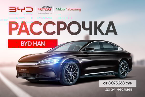 Рассрочка на BYD HAN действует во всех дилерских центрах BYD Astana Motors в Ташкенте, Андижане, Бухаре, Намангане, Ургенче.