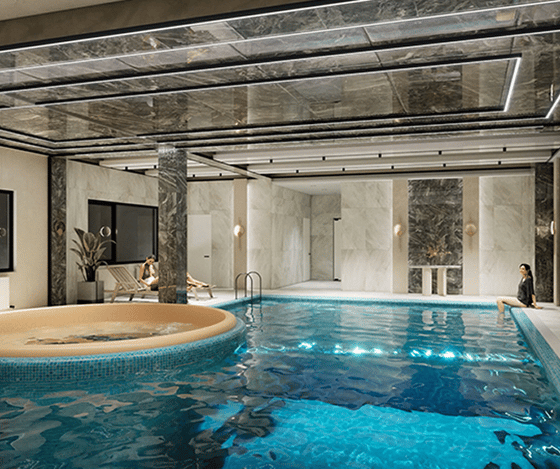 В комплексе возводятся отдельных два здания — «клубные зоны». Это специальные пространства для резидентов с бассейном, фитнес-залом, коворкингом, детской игровой комнатой, банкетным залом и другими комнатами отдыха.