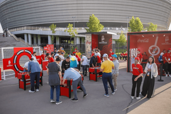Компания организовала уникальную фан-зону, где посетители могли посостязаться в настольный футбол, попробовать себя в роли футболиста и забить гол в ворота, нанести тематический грим в make-up зоне, получить памятные фотографии в insta-зоне и просто отдохнуть под музыку вместе с Coca-Cola.