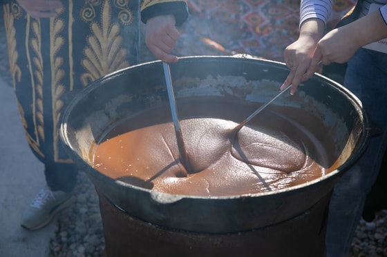 Естественно, грандиозное событие встречи — открытие казана с сумаляком. Каждый присутствующий гость забрал с собой баночку этого праздничного лакомства. А какое же значимое мероприятие проходит без главного узбекского блюда? Каждый гость получил возможность отведать тарелку праздничного плова.