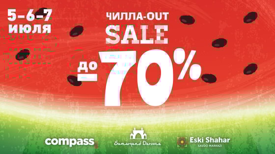 Сразу три Торговых центра - Samarqand Darvoza, Compass и Eski Shahar объявляют грандиозную летнюю распродажу «ЧИЛЛА-OUT SALE»: вас ждут скидки в размере до 70%!