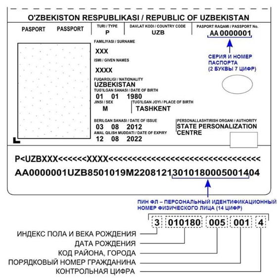 ПИНФЛ (персональный идентификационный номера физического лица) — уникальный номер гражданина, состоящий из 14 цифр в паспорте.