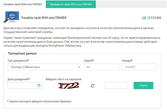 Если нет возможности проверить паспорт, то ПИНФЛ можно узнать через электронные налоговые услуги на сайте ГНК.