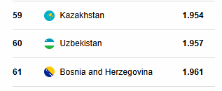 По сравнению с предыдущим годом страна поднялась на 16 позиций. Узбекистан расположился между Казахстаном и Боснией и Герцеговиной.