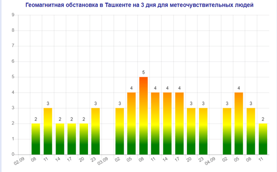 Завтра (3 сентября) в Ташкенте будет наблюдаться магнитная буря мощностью в пять баллов, следует из данных сервиса Meteonova.