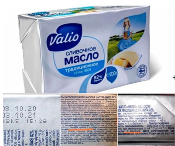 На днях в социальной сети Facebook был размещен пост, где покупатель рассказал, что обнаружил расхождение в данных о сроке годности на упаковке сливочного масла Valio. Типографским (заводским) способом на упаковку нанесена информация, где говорится, что срок годности продукта составляет один год (08.10.20-03.10.2021), в то время как маркировка указывает, что срок годности составляет всего восемь месяцев.