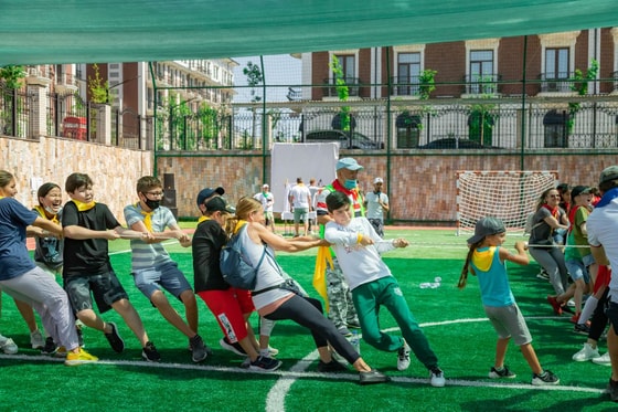 Перед началом спортивной части друзья CIS из Befit провели драйвовую разминку, зарядив энергией всех участников. На территории школы одновременно работали 13 спортивных станций, такие как: стрельба из лука, зиплайн, настольный теннис, фрисби, перетягивание каната, футбол с мишенями, командные лыжи и многое другое, где ученики, родители и учителя могли выполнять задания в одной команде, а также против команд соперников и получать заветные хауспоинты.