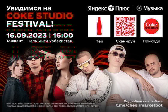 16 сентября 2023 года на Coke Studio Fest в парке «Новый Узбекистан» на одной сцене встретятся локальные и мировые звезды: дуэт Artik & Asti, Andro, Рухсора Эмм, Massa, Daler Ametist, Далимжанов, Сабина Мустаева, Dj Bella, Dj Indigo, а также всемирно известный хедлайнер, имя которого будет объявлено позже.