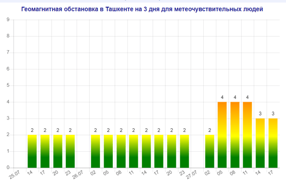 Послезавтра (27 июля) в Ташкенте будет наблюдаться магнитная буря мощностью четыре балла, следует из данных сервиса Meteonova.