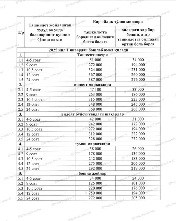 Ниже представлена таблица, в которой указаны количество проводимого детьми времени в детсадах (в часах), плата на одного ребенка и плата на каждого ребенка, если детсад посещает не один ребенок.