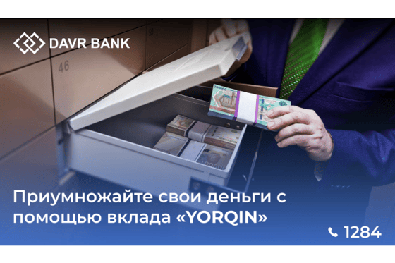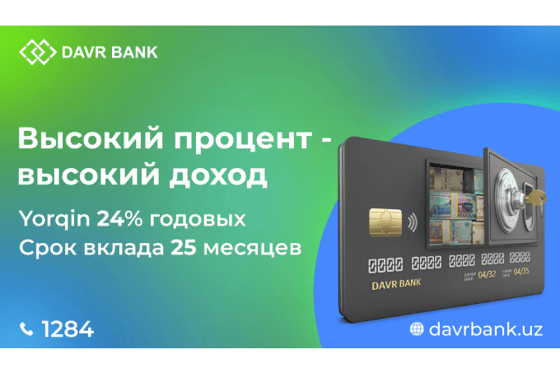ЧАКБ «Davr Bank» в целях создания комфортных условий для клиентов и популяризации услуг предлагает выгодные ставки по вкладам — 24% годовых, что позволит приумножить капитал на 50% за весь срок внесения (25 месяцев).