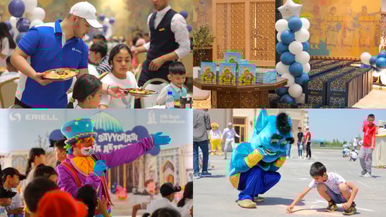 Накануне 1 июня 2023 года Группа компаний ERIELL совместно с Туристическим комплексом Silk Road Samarkand при поддержке Национальной гвардии и Туристической полиции УВД Самаркандской области организовали праздник для 300 детей, лишенных заботы и опеки родителей, из филиала Самаркандской Ассоциации «SOS Детские деревни», семейных детских домов, а также малышей из социально уязвимых семей, которых курирует служба предотвращения социального сиротства при филиале вышеупомянутой Ассоциации.