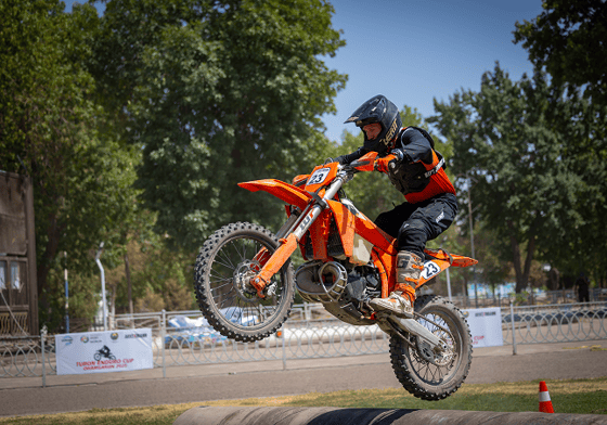 Эндуро — экстремальный вид мотокросса, требующий от райдеров не только скорости, но и выносливости. Трасса длиной 50 километров проходила по бездорожью, скалам и карьеру Ахангаранского цементного завода, который специально предоставили для гонки.