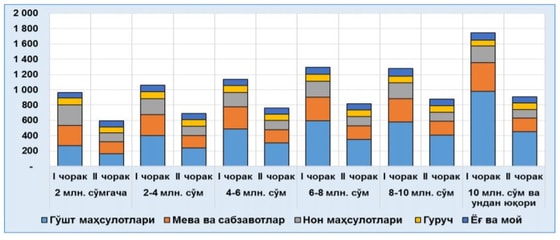В исследовании говорится, что в результате пандемии у людей снизились затраты на мясную продукцию. В среднем узбекистанцы в первом квартале тратили в месяц 164 тысячи сумов на мясную, во втором квартале затраты снизились до 107 тысячи сумов, что на 39,5% меньше.