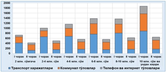 Счета за коммунальные услуги, интернет и телефонную связь также снизились в среднем на 2% для всех групп доходов из-за невозможности своевременной выплаты этих платежей в период карантина.