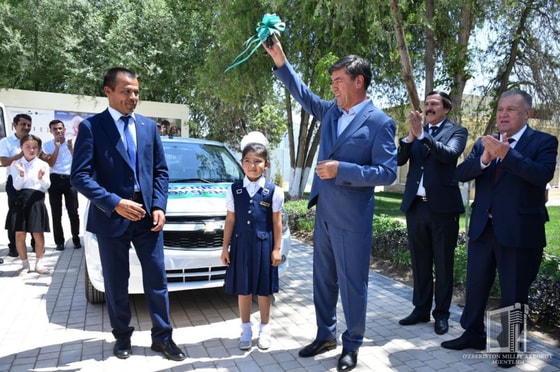 В ходе официального визита в Ташкентскую область глава государства Шавкат Мирзиёев подарил автомобиль отцу девочки, которая сочинила стихотворение о пяти приоритетных направлениях развития Узбекистана в 2017-2021 годах.