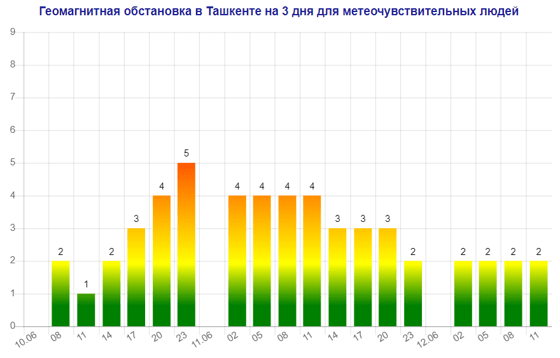 Сегодня (10 июня) в Ташкенте будет наблюдаться магнитная буря мощностью пять баллов, следует из данных сервиса Meteonova.