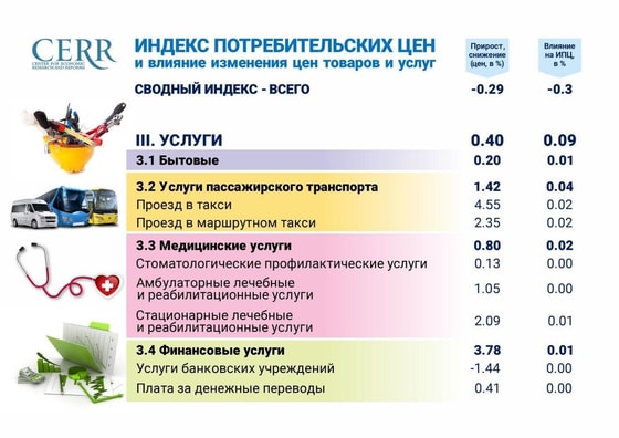 В частности, услуги пассажирского транспорта поднялись на 1,4 процента, услуги такси на 4,6 процентов и проезд в маршрутном такси на 2,3 процента.