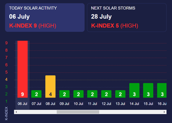 Завтра показатель должен опуститься до низкого уровня. Послезавтра будет наблюдаться К-индекс 4.
