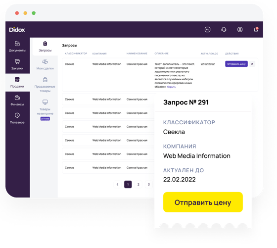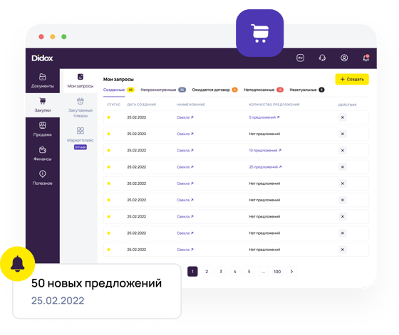 Благодаря новой системе закупок в Дидокс, вы начнете получать интересы без каких-либо усилий. Потенциальные покупатели оформляют запрос на какой-либо товар/услугу и, если вы продаете продукты из этой же категории, система направит клиентов к вам.