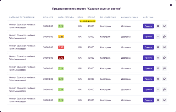 По этим данным система мгновенно определяет всех поставщиков таких товаров из базы с более чем 250 000 организаций и направляет им этот запрос.
