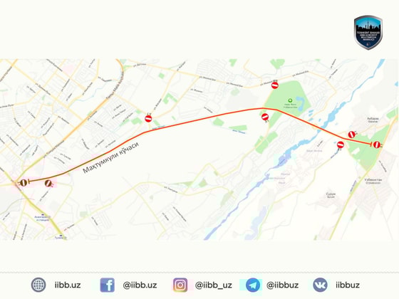 Дорога будет перекрыта с 19:00 до 24:00 на улицах Янги Узбекистон, Махтумкули, Табаррук и Чолпон в связи с празднованием Дня Независимости.