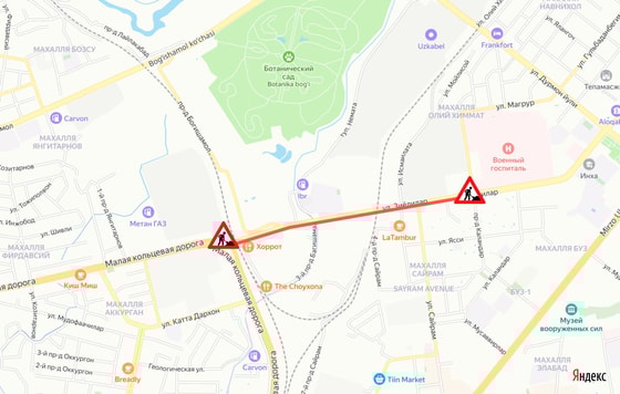 - участок односторонней дороги по улице Зиёлилар от пересечения с Малой кольцевой автомобильной дорогой до пересечения с улицей Каландар.