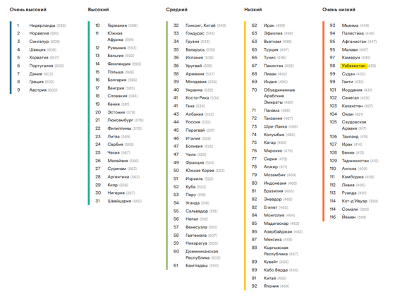 - Таджикистан — 109-е место;