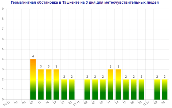 Сегодня (9 ноября) в Ташкенте наблюдается магнитная буря мощностью четыре балла, следует из данных сервиса Meteonova.