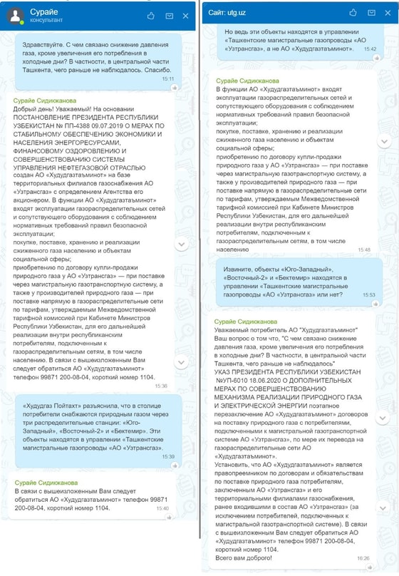 Автор попытался выяснить причины низкого давления газа в Ташкенте в АО «Узтрансгаз», но результаты были предсказуемы.
