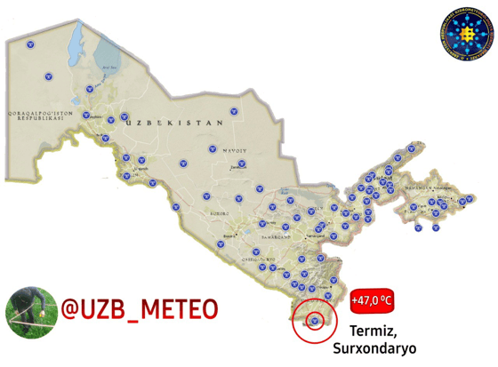 Накануне температура воздуха в Термезе поднялась до +47 градусов. Примечательно, что 30 июня 2001 года рекордный показатель по региону составлял +44,3 градуса.