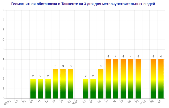 Завтра и послезавтра (10-11 мая) в Ташкенте будет наблюдаться магнитная буря мощностью четыре балла, следует из данных сервиса Meteonova.