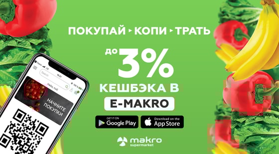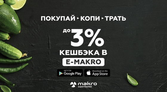 Ещё больше, ещё выгоднее кешбэк в Makro. Скачивайте приложение E-Makro в Google Play или AppStore, регистрируйтесь и открывайте для себя ряд возможностей.