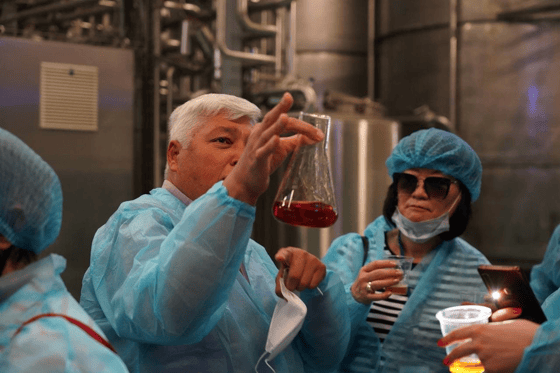 После прогулки по саду гости посетили завод СП OOO «AGROMIR», куда оперативно доставляется все собранное сырье.