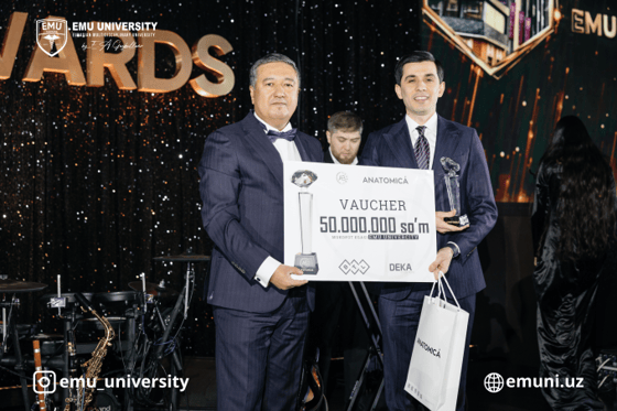 Статус лауреата в категории «Лучший медицинский университет 2024 года» и награду «За значительный вклад в развитие медицины Республики Узбекистан» университет EMU получил на церемонии вручения премий AB Awards, где общий размер призового фонда составил свыше 1 млрд сум.