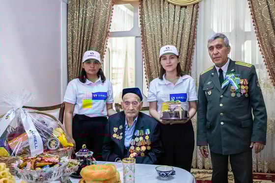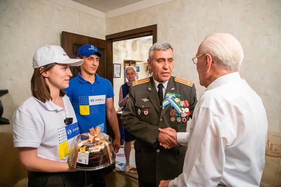 Ежегодно Группа компаний ERIELL поздравляет ветеранов Второй Мировой Войны с Днем памяти и почестей в регионах Республики Узбекистан. В этом году, по традиции, в преддверии знаменательного праздника представители ERIELL при участии Министерства Обороны и военного оркестра Академии Вооруженных Сил Республики Узбекистан поздравили 33-х ветеранов Второй Мировой Войны в Ташкенте.